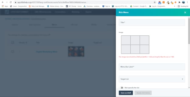 *รูป Rich Menus โดยรวมควรมี ความกว้างอยู่ที่ 2500px และ ความสูงอยู่ที่ 1686px รวมถึงขนาดไฟล์ที่ 1 MB